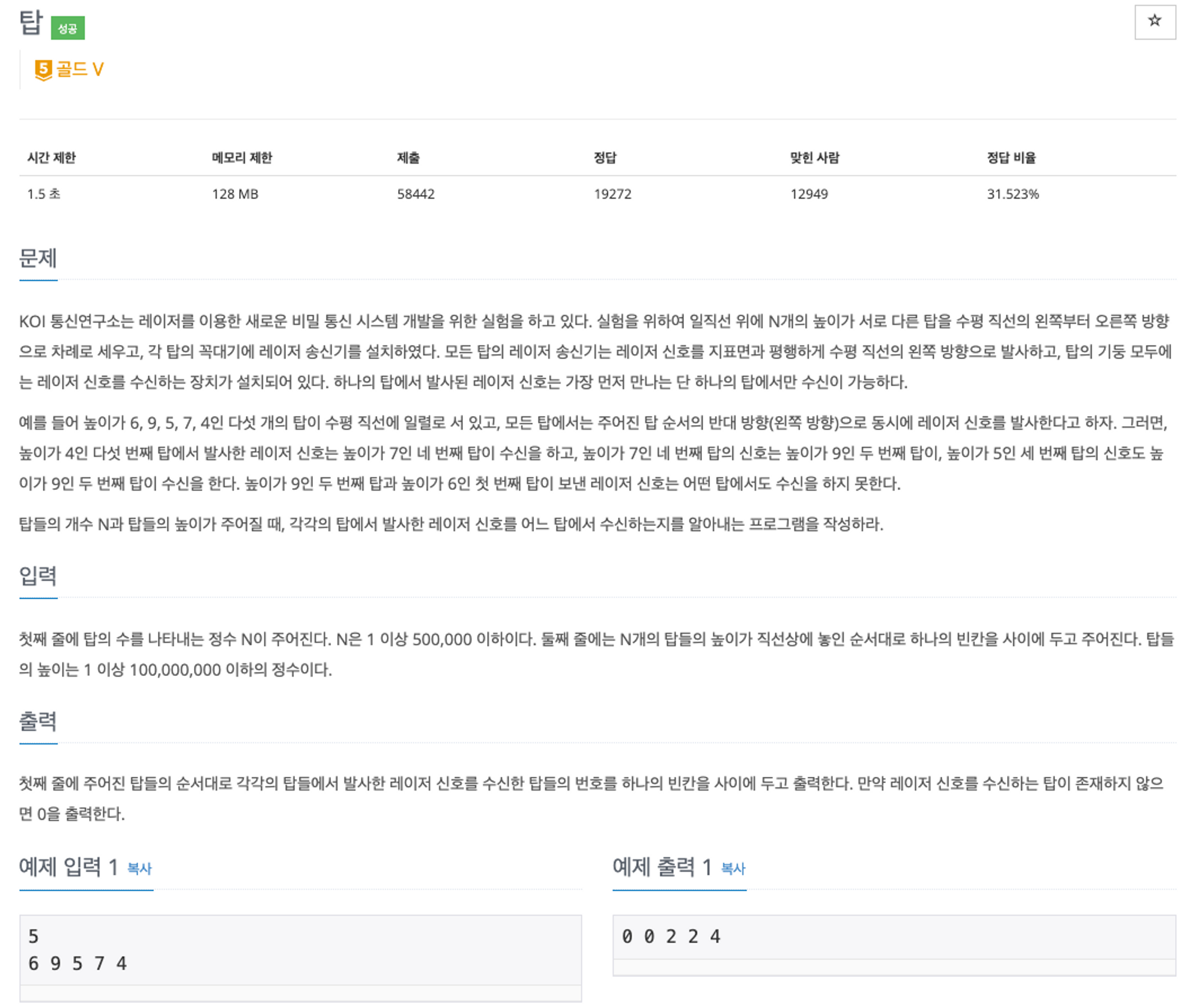 https://www.acmicpc.net/problem/2493