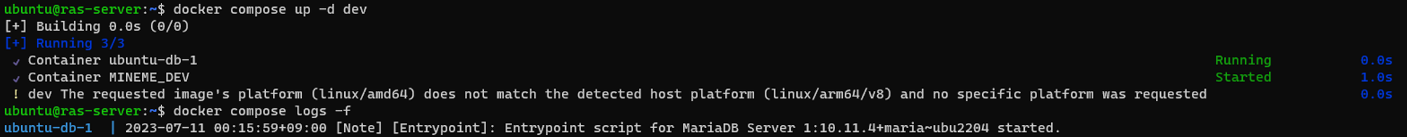 서버에 ssh 로 접속해 방금 push 한 이미지를 pull 받은 후 docker compose up 을 실행합니다.