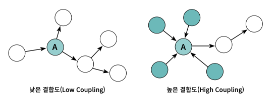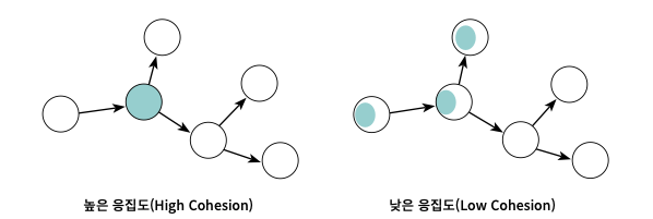 - 높은 응집도와 낮은 결합도 ! (High Cohesion, Low Coupling)