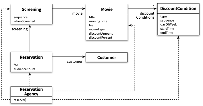 예제로 살펴보고 있는 영화 예매 도메인에는 순번 조간, 기간 조건이라는 두 종류 할인 조건이 있다.